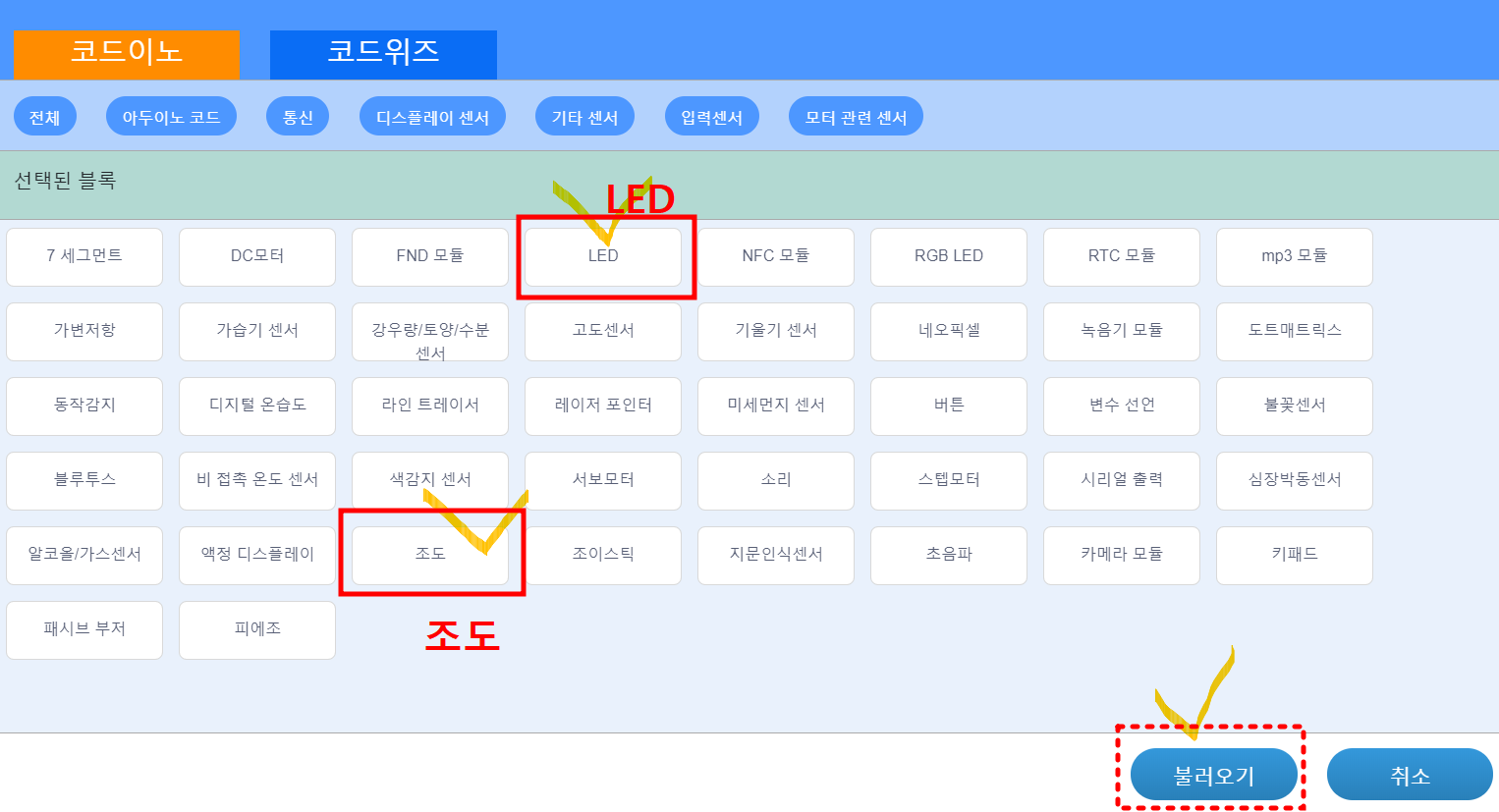 [스크래치아두이노.003] 빛 세기에 반응하는 LED