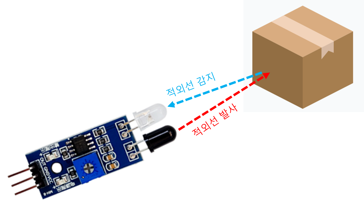 - 방출된 적외선은 물체에 부딪혀 반사되고, 이를 포토트랜지스터가 감지한다.