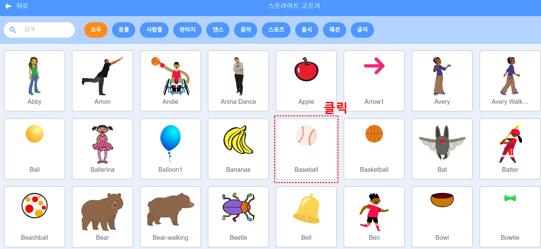 (1) 스프라이트 가져오기 클릭