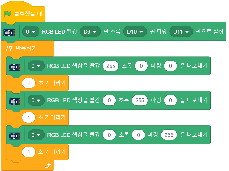 🚩 [코드1] 컬러 LED 1초 간격으로 색깔 변하기