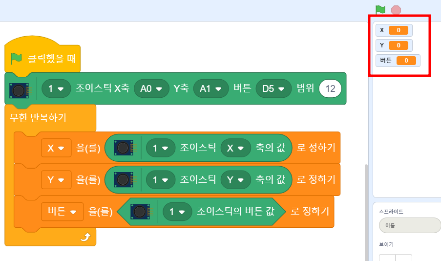 [4] 조이스틱의 , X, Y, 버튼값 확인하기