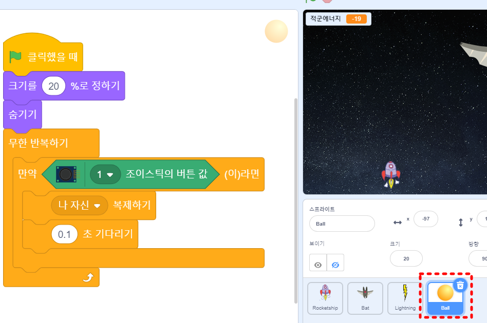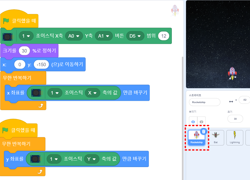 [6] < 코딩 실습 2 > 조이스틱 우주선 게임