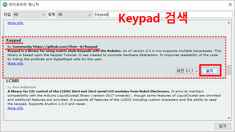 [2] "Keypad" 라고 검색한 결과 "Keypad by Community...."를 찾아 설치 하기