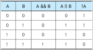 - 아래의 논리 연산자 표에서, 1은 참(true), 0은 거짓(false)를 의미합니다.