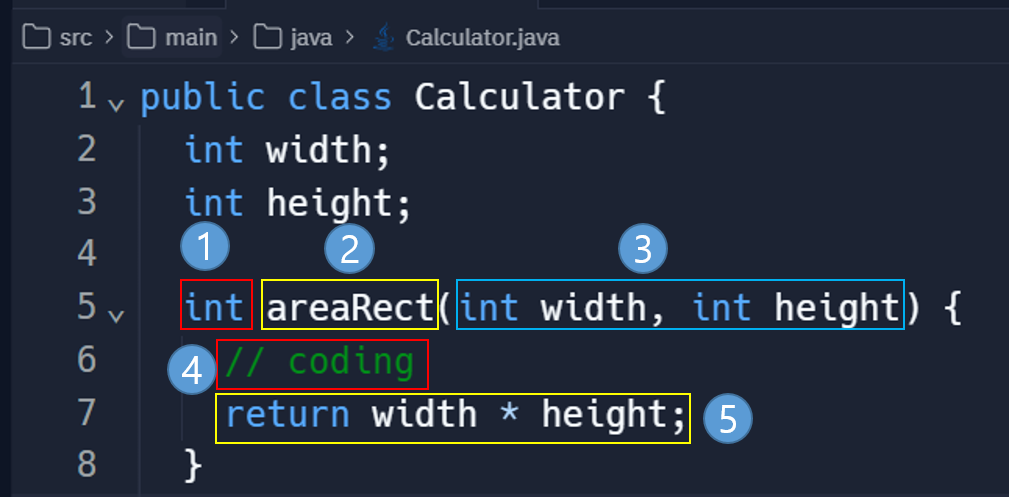 int result1 = myRect.areaRectangle(5);