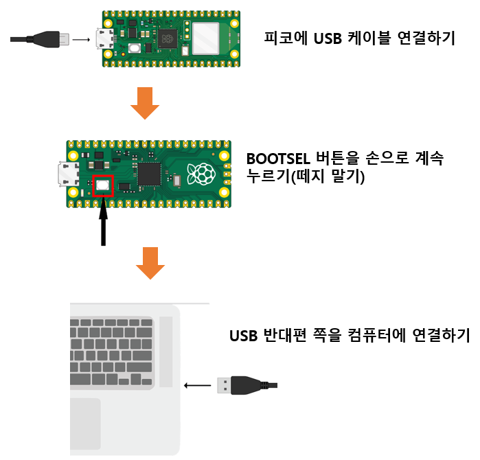 [1] USB케이블을 준비해 아래 그림의 절차대로 해줍니다.