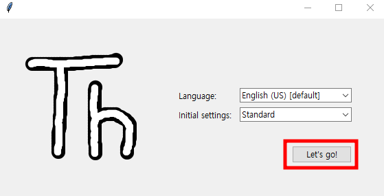 [12] Language 선택창에서 "한국어(Korean)"가 있긴 하지만 아직 Alpha버전이라서 그냥 기본값인 English(US)로 선택하고 Let's go! 버튼을 누릅니다.