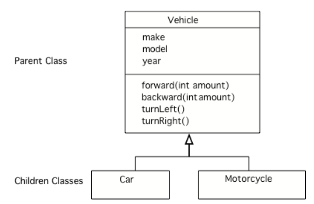 1 2 | public class Car extends Vehicle public class Motorcycle extends Vehicle | cs |