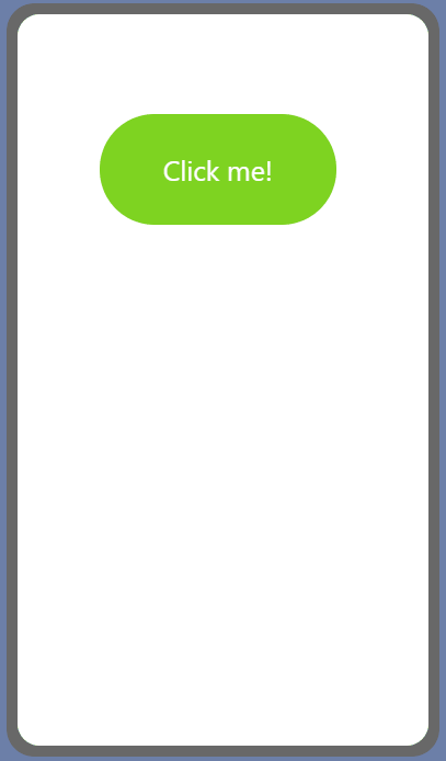 가운데 모바일 화면에 버튼 하나를 마우스로 끌어 놓습니다. 그리고 버튼의 크기를 마우스로 적당히 크게 해줍니다.