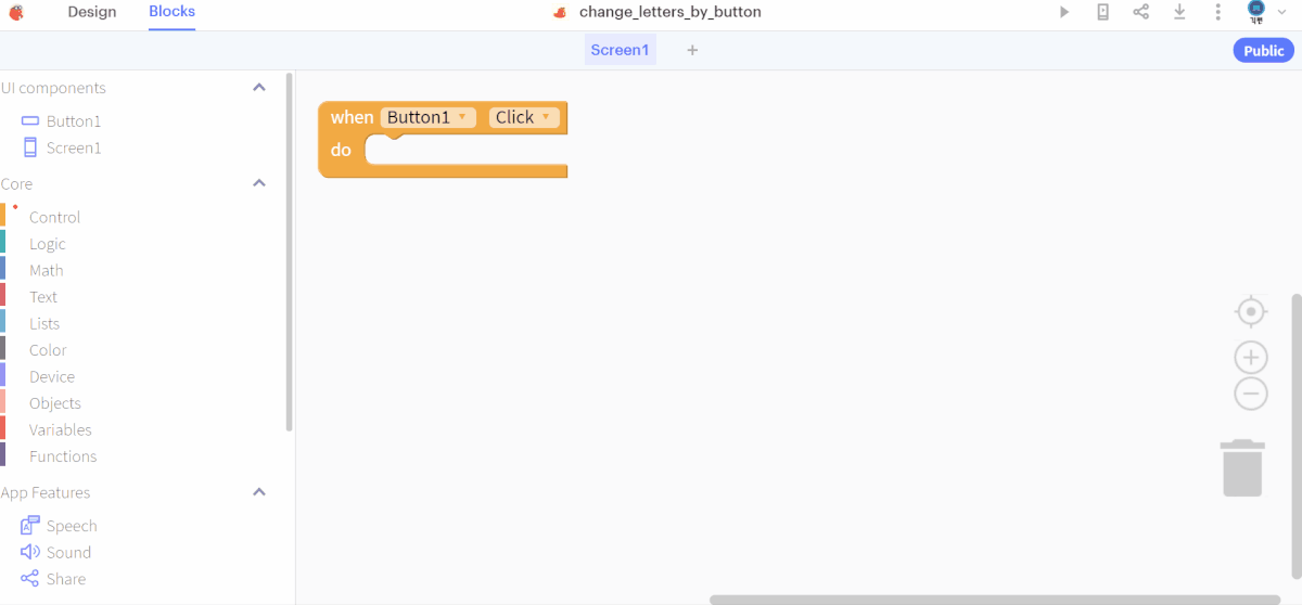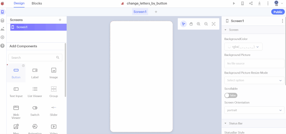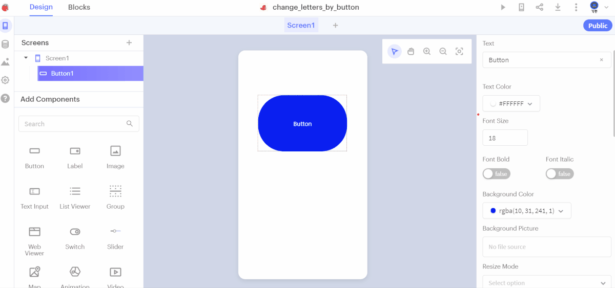 Thunkable이라는 사이트에서 이번에 만들 모바일 앱은 "버튼 글자 변경 앱"입니다.