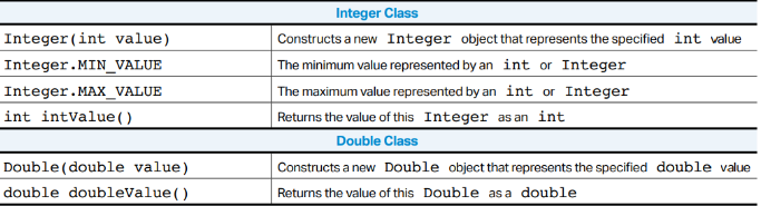 - Integer, Double 클래스는 primitive types(int, double)으로부터 object를 만들 수 있는 wrapper class이다.