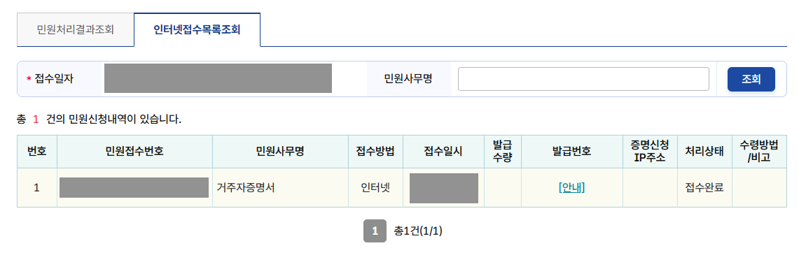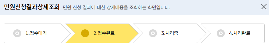 지금은 접수완료 중인거라 "처리완료"가 될 때까지 약 2~3일 기다려야 합니다.