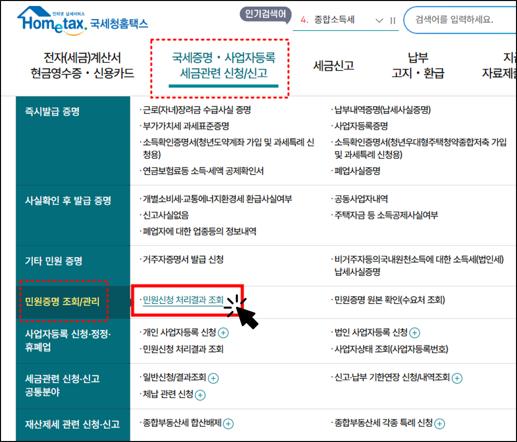 홈택스에 납세자 거주지정보 접수후 1~2일 후에 다시 홈택스에 접속합니다.