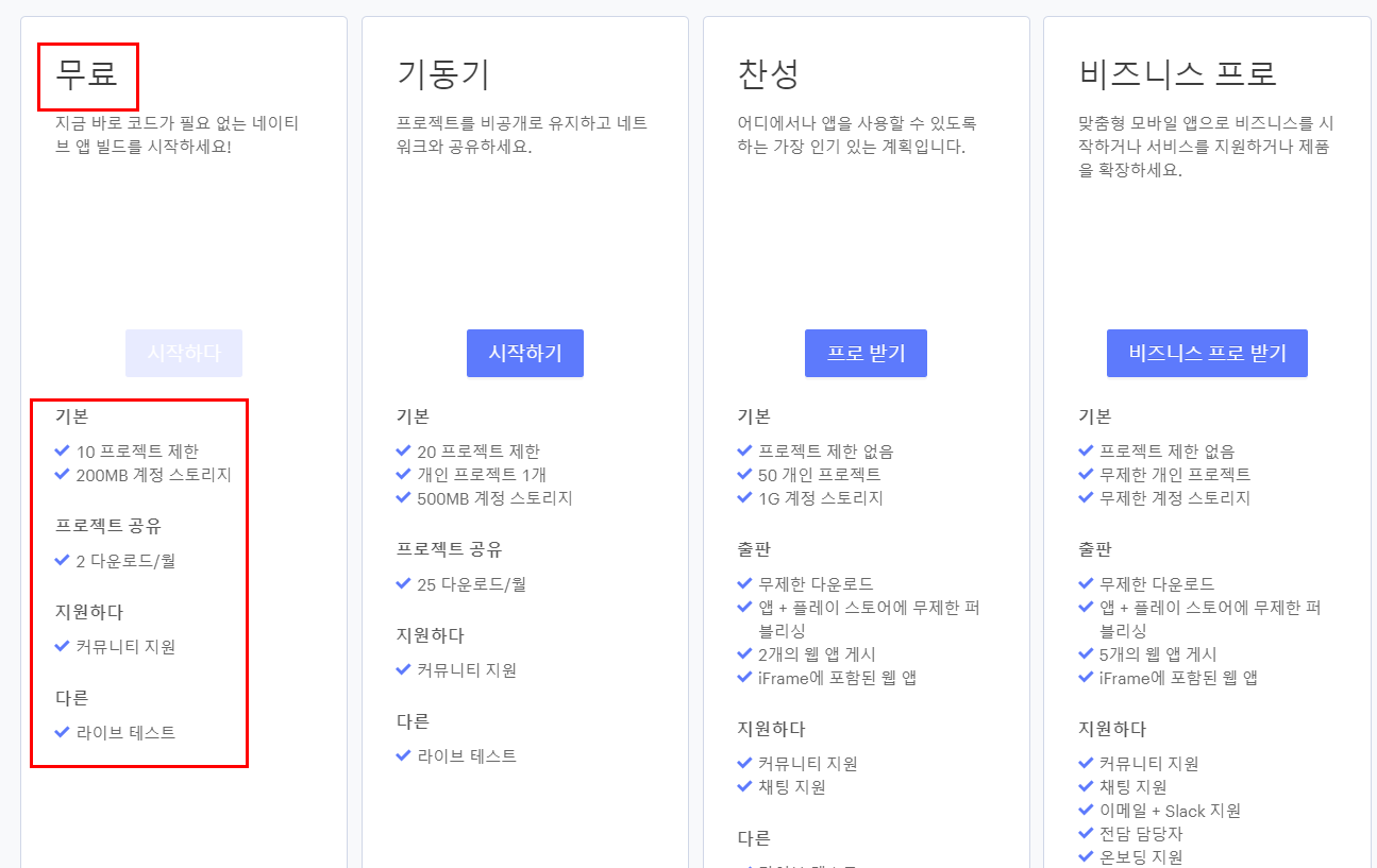 무료 계정을 사용할 경우 10개의 프로젝트(앱)을 최대로 만들 수 있습니다. 유료로 업그레이드 해도 되지만, 무료로 공부하고 싶으신 분은, 10개를 다 만든 후 11번째 앱을 만들기 위해 이전에 만든 것을 하나 삭제하는 방법으로 앱 공부를 계속 이어나가면 되겠습니다.