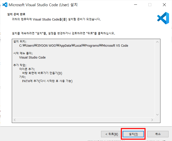 (저는 바탕화면에서 빠른실행을 위해 "바탕화면에 바로가기 만들기"를 체크하여 바탕화면에 아이콘을 생성했습니다.)