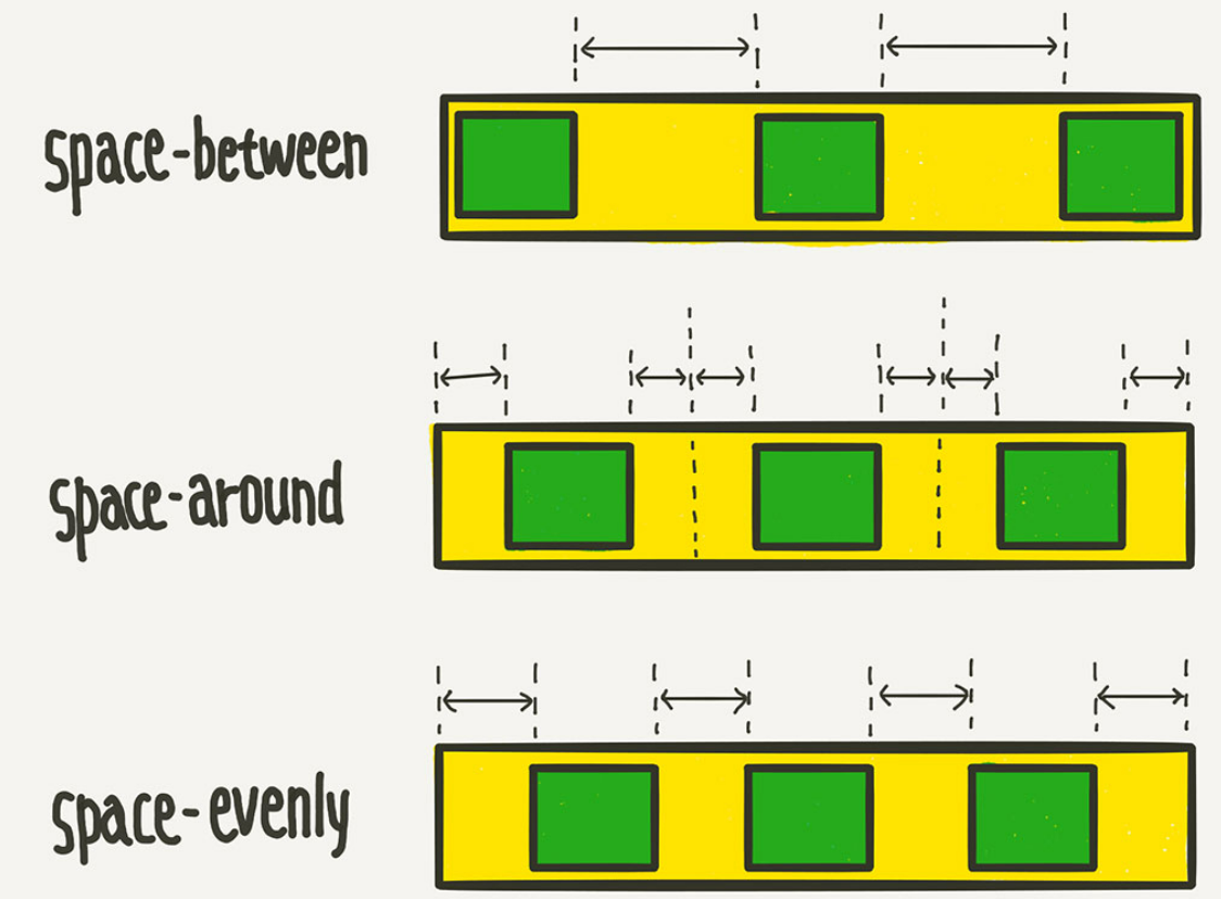space-between/around/evenly에 대한 이미지 설명은 아래 더보기 클릭하기