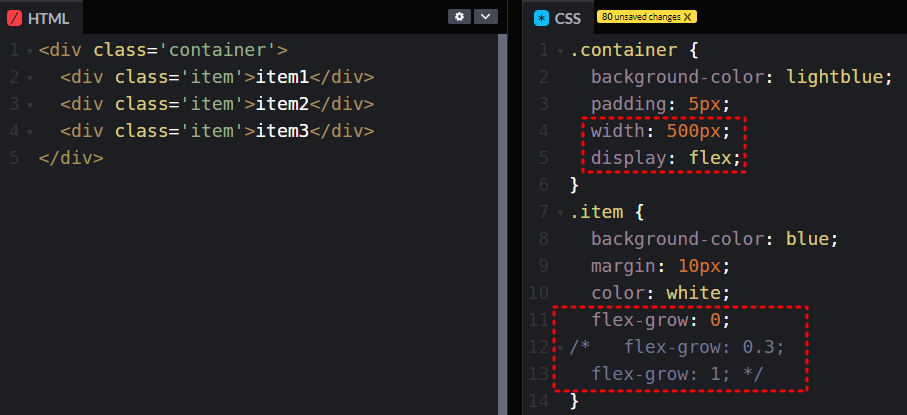 아래그림의 빨간네모 친 부분처럼, 코드1에서 display:flex를 추가해 줍니다.
