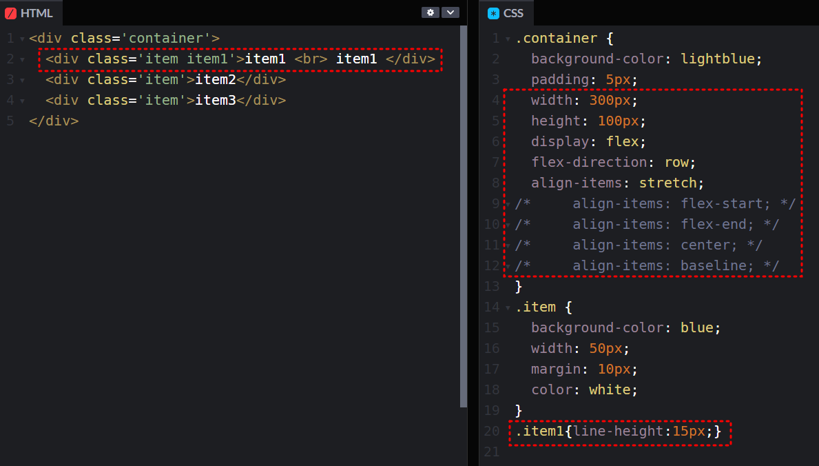 align은 세로정렬을 의미합니다. 그래서 align-items는 세로축 방향으로 아이템들을 정렬할 때 사용합니다.